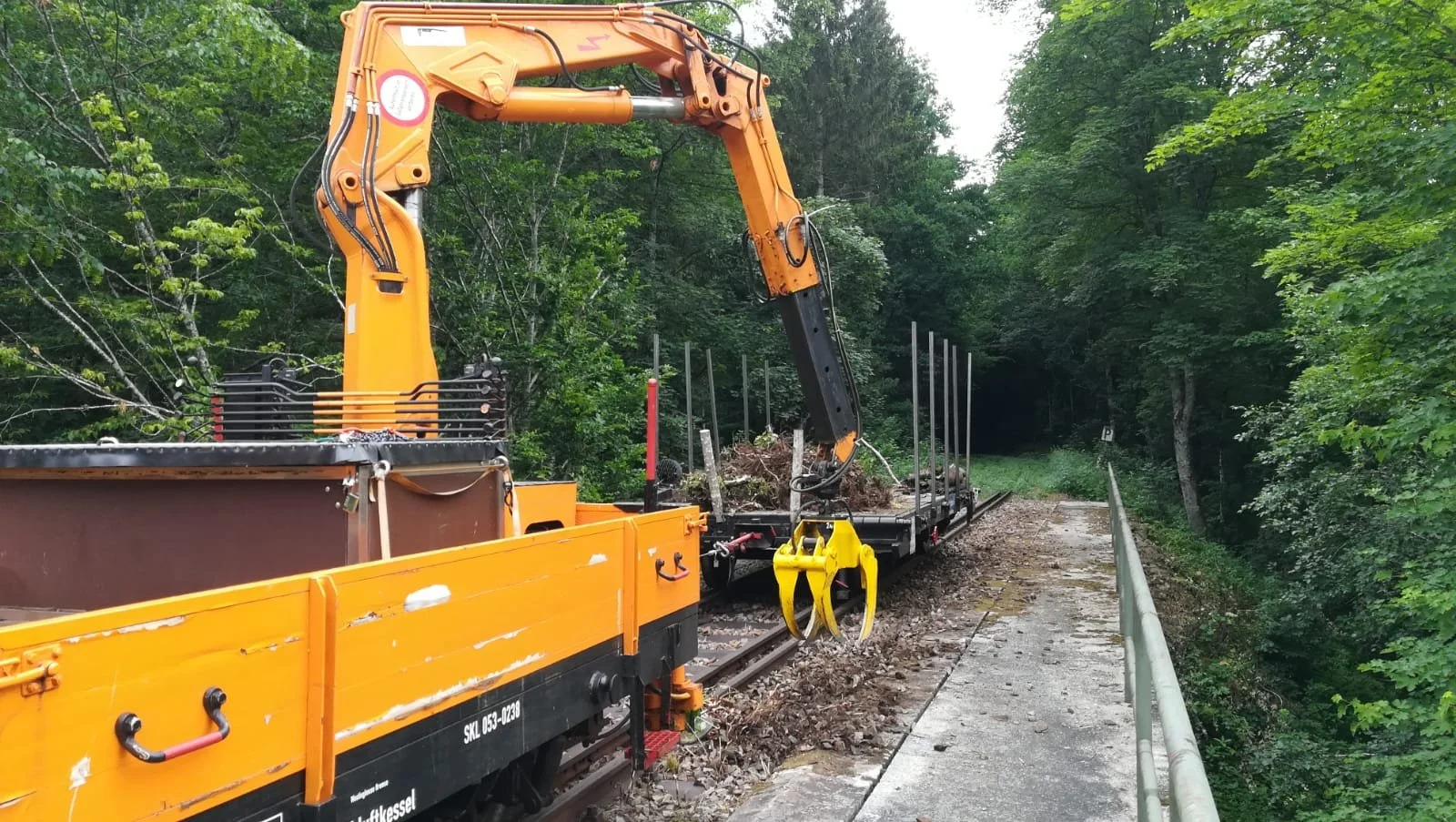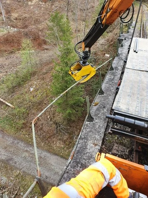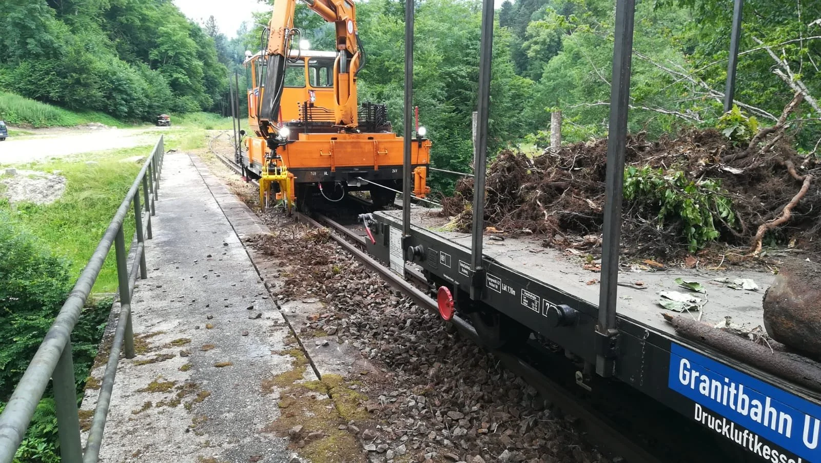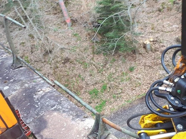 Brücke Schaibing: Entfernung der Wurzelstöcke auf Brücke